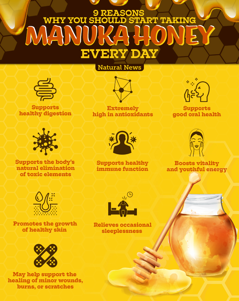 Tagged Under: antioxidants, detox, detoxification, digestion, flavonoids, food cures, food is medicine, functional food, good nutrition, healing, health benefits, Health Ranger Store, healthy digestion, honey, immune health, immune system, manuka honey, mental, methylglyoxal, MGO, natural cures, natural medicine, natural sweeteners, non-peroxide activity, NPA, oral health, phytonutrients, prevention, remedies, skin care, skin health, sleep issues, sleeplessness, sugar alternative, sugar substitute, supplements, sweetener, vitality, Wound Healing